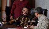 REPUBLIKA.CO.ID, JAKARTA. -- Mantan Ketua Mahkamah Konstitusi (MK) Anwar Usman sebelum memberikan keterangan terkait hasil putusan Majelis Kehormatan Mahkamah Konstitusi (MKMK) di Gedung MK, Jakarta, Rabu (8/11/2023).