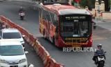 REPUBLIKA.CO.ID,SURABAYA -- Bus Suroboyo berisi penumpang melintas di Jalan Basuki Rahmat, Surabaya, Jawa Timur, Rabu (8/11/2023).
