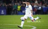 Lautaro Martinez dari Inter Milan mencetak gol timnya melalui tendangan penalti pada pertandingan sepak bola grup D Liga Champions antara Salzburg dan Inter Milan di Salzburg, Austria, Kamis (9/11/2023) dini hari WIB. (FOTO : AP Photo/Petr David Josek)