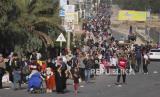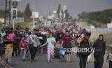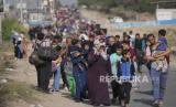 Warga sipil yang terdiri dari anak-anak, perempuan, dan orang lanjut usia itu berjalan sambil mengibarkan bendera putih.