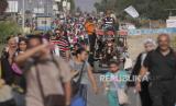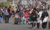 REPUBLIKA.CO.ID, JALUR GAZA SELATAN. -- Warga Palestina mengungsi ke Jalur Gaza selatan di Jalan Salah al-Din di Bureij, Jalur Gaza, pada Rabu (8/11/2023).