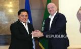 REPUBLIKA.CO.ID, JAKARTA. -- Ketua PSSI Erick Thohir menyambut kedatangan Presiden FIFA Gianni Infantino di Jakarta, Kamis (9/11/2023).