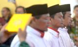 REPUBLIKA.CO.ID,YOGYAKARTA -- Narapidana Teroris (Napiter) membaca teks Pancasila usai membacakan ikrar setia kepada NKRI di Lapas Kelas IIA Wirogunan, Yogyakarta, Kamis (9/11/2023).