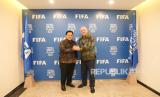 Ketua PSSI bersama Presiden FIFA Gianni Infantino saat meresmikan kantor FIFA Jakarta, Jumat (10/11/2023). Kantor FIFA Jakarta berlokasi di Menara Mandiri II, Jalan Jenderal Sudirman, Jakarta. Kantor FIFA Jakarta berstatus sebagai FIFA Permanent Office South Asian Hub atau kantor penghubung permanen FIFA untuk Asia Tenggara. (FOTO : Dok Republika)