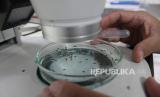 REPUBLIKA.CO.ID,JAKARTA -- Peneliti Badan Riset dan Inovasi Nasional (BRIN) mengamati pupa jantan nyamuk Aedes aegypti yang hendak dimandulkan di Jakarta, Jumat (10/11/2023).