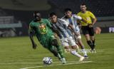 Penyerang Timnas Senegal Clayton Diandy (kiri) berusaha melewati hadangan pemain Timnas Argentina pada pertandingan babak penyisihan Grup D Piala Dunia U17 2023 di Stadion Si Jalak Harupat, Kabupaten Bandung, Jawa Barat, Sabtu (11/11/2023). Dalam pertandingan tersebut Timnas Senegal berhasil mengalahkan Timnas Argentina dengan skor akhir 2-1. (FOTO : REPUBLIKA/ABDAN SYAKURA)