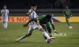 Gelandang Timnas Argentina Valentino Acuna (kanan) berebut bola dengan bek Timnas Senegal Ibrahima Diallo (kiri) pada pertandingan babak penyisihan Grup D Piala Dunia U17 2023 di Stadion Si Jalak Harupat, Kabupaten Bandung, Jawa Barat, Sabtu (11/11/2023). Dalam pertandingan tersebut Timnas Senegal berhasil mengalahkan Timnas Argentina dengan skor akhir 2-1. (FOTO : REPUBLIKA/ABDAN SYAKURA)