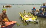 Acara larung tumpeng menandai puncak tradisi Sedekah Rawapening, yang dilaksanakan dalam rangkaian acara Rawapening Perfoming Art and Festival (RPAF) 2023 yang digelar Disparta Kabupaten Semarang, di kawasan Bukit Cinta Rawapening, Desa Kebondowo, Kecamatan Banyubiru, Kabupaten Semarang, Sabtu (11/11). (FOTO : Republika/Bowo Pribadi)