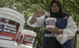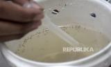 Petugas dari Dinas Kesehatan (Dinkes) Kota Bandung memeriksa ember berisi pakan dan telur nyamuk yang sudah disuntikkan bakteri Wolbachia di Kantor Dinkes Kota Bandung, Bandung, Jawa Barat, Senin (13/11/2023). Pemerintah Kota Bandung telah mengimplementasikan inovasi bakteri wolbachia ke dalam telur-telur nyamuk Aedes aegypty guna menekan kasus DBD di Kota Bandung. Kota Bandung merupakan satu dari lima kota pilot project untuk implementasi penanggulangan DBD berbasis teknologi wolbachia. (FOTO : REPUBLIKA/ABDAN SYAKURA)