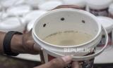 Petugas dari Dinas Kesehatan (Dinkes) Kota Bandung menunjukkan pakan dan telur nyamuk yang sudah disuntikkan bakteri Wolbachia di Kantor Dinkes Kota Bandung, Bandung, Jawa Barat, Senin (13/11/2023). Pemerintah Kota Bandung telah mengimplementasikan inovasi bakteri wolbachia ke dalam telur-telur nyamuk Aedes aegypty guna menekan kasus DBD di Kota Bandung. Kota Bandung merupakan satu dari lima kota pilot project untuk implementasi penanggulangan DBD berbasis teknologi wolbachia. (FOTO : REPUBLIKA/ABDAN SYAKURA)