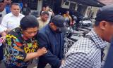 Penjabat Bupati Sorong Yan Piet Mosso (kedua kanan) didampingi Isteri (kiri) dibawa menuju Bandara DEO Kota Sorong, Papua Barat Daya, Senin (13/11/2023). Komisi Pemberantasan Korupsi (KPK) menangkap tangan Penjabat Bupati Sorong, Kepala Badan Keuangan dan Aset Daerah (BPKAD) Kabupaten Efter Segidifat, serta seorang pemeriksa BPK Papua Barat sekitar pukul 03.00 WIT di kediaman Bupati Sorong. (FOTO : Antara/Olha Mulalinda )