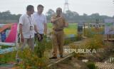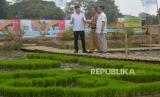 REPUBLIKA.CO.ID, SERANG. -- Ketua Tim Kerja Kesehatan Balita dan Anak Prasekolah Direktorat Gizi dan KIA Kemenkes Muhammad Yusuf, Direktur Bayer Indonesia Florian Zirnstein dan Kepala Dinas Ketahanan Pangan dan Pertanian (DKPP) Kabupaten Serang Suhardjo (dari kiri) meninjau lahan pertanian saat peluncuran program Bayer untuk Indonesia (BISA) di Kabupaten Serang, Banten, Senin (13/11/2023).