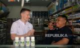Direktur Bayer Indonesia Florian Zirnstein berbincang saat meninjau salah satu kios BLFC binaan program Bayer untuk Indonesia (BISA) di Kabupaten Serang, Banten, Senin (13/11/2023). Program Bayer untuk Indonesia (BISA) ini bertujuan meningkatkan produktivitas pertanian dan kualitas kesehatan petani pedesaan. Memperingati Hari Kesehatan Nasional 2023, Bayer memperluas jangkauan pelaksanaan program ini ke enam Provinsi di Indonesia: Banten, Jawa Tengah, Jawa Barat, Jawa Timur, Bali dan NTT. (FOTO : Republika/Prayogi)