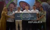 Perwakilan Dinas Kesehatan Kabupaten Serang Gia Andriani, Penata KKB Ahli Muda BKKBN Banten Supriyatna, Ketua Tim Kerja Kesehatan Balita dan Anak Prasekolah Direktorat Gizi dan KIA Kemenkes Muhammad Yusuf, Direktur Bayer Indonesia Florian Zirnstein, Country Division Head Pharmaceuticals Bayer Indonesia Jeff Lai dan Koordinator Kerja Sama dan Pendayagunaan Hasil Penelitian BSIP Kementan Suprihanto (dari kiri) saat peluncuran program Bayer untuk Indonesia (BISA) 2023-2024 di Kabupaten Serang, Banten Senin (13/11/2023). Program Bayer untuk Indonesia (BISA) ini bertujuan meningkatkan produktivitas pertanian dan kualitas kesehatan petani pedesaan. Memperingati Hari Kesehatan Nasional 2023, Bayer memperluas jangkauan pelaksanaan program ini ke enam Provinsi di Indonesia: Banten, Jawa Tengah, Jawa Barat, Jawa Timur, Bali dan NTT. (FOTO : Republika/Prayogi)