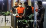 Tersangka Direktur PT Putra Kharisma Sejahtera Zulfikar Fahmi memakai rompi tahanan saat berjalan menuju ruang konferensi pers di Gedung Merah Putih KPK, Jakarta, Senin (13/11/2023). KPK menahan Zulfikar Fahmi dalam pengembangan perkara dugaan suap terkait proyek peningkatan jalur KA Lampegan-Cianjur di Balai Teknik Perkeretaapian Kelas I Bandung Tahun 2023-2024 dengan nilai suap sebesar Rp 935 juta. (FOTO : Republika/Putra M. Akbar)