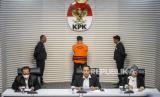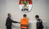 Tersangka Direktur PT Putra Kharisma Sejahtera Zulfikar Fahmi memakai rompi tahanan saat konferensi pers di Gedung Merah Putih KPK, Jakarta, Senin (13/11/2023). KPK menahan Zulfikar Fahmi dalam pengembangan perkara dugaan suap terkait proyek peningkatan jalur KA Lampegan-Cianjur di Balai Teknik Perkeretaapian Kelas I Bandung Tahun 2023-2024 dengan nilai suap sebesar Rp 935 juta. (FOTO : Republika/Putra M. Akbar)
