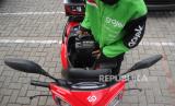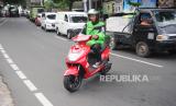 Pengemudi Ojek online mengendarai motor listrik ECGO 3 di Jakarta, Senin (13/11/2023). Motor listrik ini telah memperoleh sertifikasi Tingkat Komponen Dalam Negeri (TKDN) sebesar 57,89% dari Kementerian Perindustrian dalam memenuhi standar industri nasional. Untuk meningkatkan akses terhadap transportasi yang ramah lingkungan di Indonesia, ECGO bekerja sama dengan distributor resminya EVMOTO, telah meluncurkan motor listrik ECGO 3 A/T dengan harga terjangkau sebesar 7,9 juta Rupiah. (FOTO : Republika/Tahta Aidilla)