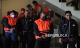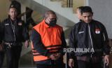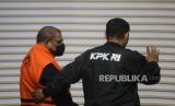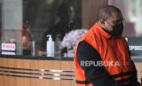 REPUBLIKA.CO.ID,JAKARTA -- Pj Bupati Sorong Yan Piet Mosso memakai rompi tahanan saat dihadirkan pada konferensi pers di Gedung Merah Putih KPK, Jakarta, Selasa (14/11/2023).