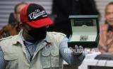 Petugas memperlihatkan barang bukti jam tangan Rolex saat konferensi pers di Gedung Merah Putih KPK, Jakarta, Selasa (14/11/2023). KPK menetapkan Pj Bupati Sorong Yan Piet Mosso beserta lima orang lainnya yang terjaring OTT menjadi tersangka kasus dugaan suap terkait pengondisian temuan laporan Badan Pemeriksaan Keuangan (BPK) untuk wilayah Provinsi Papua Barat Daya Tahun Anggaran 2023. Pada OTT tersebut KPK mengamankan uang sekitar Rp 940 juta dan satu jam tangan merek Rolex. (FOTO : Republika/Putra M. Akbar)
