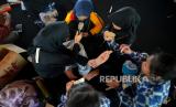 Siswa sekolah dasar mewarnai karakter wayang kontemporer di pendopo Akademik Komunitas Negeri (AKN) Seni Budaya Yogyakarta, Selasa (14/11/2023). Sebanyak 50an siswa sekolah dasar mengikuti pelatihan membuat wayang kontemporer menggunakan kardus bekas. Acara ini diadakan dalam rangka Hari Wayang Nasional dan Dunia dengan tujuan untuk mengajak anak-anak mencintai wayang dan mempercepat regenerasi pembuat wayang. Berbagai karakter wayang dibuat oleh anak-anak dan dibantu oleh pemandu dalam pembuatannya. (FOTO : Republika/Wihdan Hidayat)