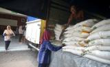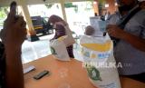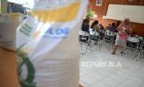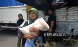 REPUBLIKA.CO.ID, MANTRIJERON -- Warga Kelurahan Gedongkiwo mengambil bantuan beras di Kecamatan Mantrijeron, Kota Yogyakarta, Selasa (14/11/2023).
