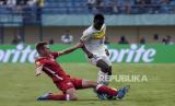 Penyerang Timnas Senegal Amara Diouf (kanan) diadang bek Timnas Polandia Dominik Szala (kiri) pada pertandingan babak penyisihan Grup D Piala Dunia U17 2023 di Stadion Si Jalak Harupat, Kabupaten Bandung, Jawa Barat, Selasa (14/11/2023). (FOTO : REPUBLIKA/ABDAN SYAKURA)