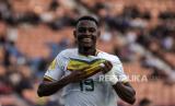 Penyerang Timnas Senegal Idrissa Gueye melakukan selebrasi usai mencetak gol ke gawang Timnas Polandia pada pertandingan babak penyisihan Grup D Piala Dunia U17 2023 di Stadion Si Jalak Harupat, Kabupaten Bandung, Jawa Barat, Selasa (14/11/2023). (FOTO : REPUBLIKA/ABDAN SYAKURA)