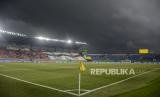 Suasana pertandingan babak penyisihan Grup D Piala Dunia U17 2023 antara Timnas Polandia melawan Timnas Senegal yang dihentikan sementara akibat cuaca di Stadion Si Jalak Harupat, Kabupaten Bandung, Jawa Barat, Selasa (14/11/2023). (FOTO : REPUBLIKA/ABDAN SYAKURA)