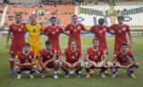 Pemain Timas Polandia berfoto sebelum pertandingan babak penyisihan Grup D Piala Dunia U17 2023 di Stadion Si Jalak Harupat, Kabupaten Bandung, Jawa Barat, Selasa (14/11/2023). (FOTO : REPUBLIKA/ABDAN SYAKURA)