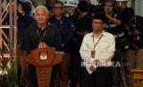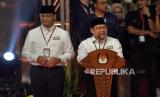 Pasangan Calon Presiden dan Wakil Presiden No Urut 1 Anies Baswedan dan Muhaimin Iskandar memberikan sambutan dalam acara pengundian dan penetapan nomor urut pasangan calon presiden dan wakil presiden dalam pemilihan umum tahun 2024 di Gedung KPU, Jakarta, Selasa (14/11/2023). Pasangan Anies Baswedan dan Muhaimin Iskandar mendapatkan nomor urut 1, Pasangan Prabowo Subianto dan Gibran Rakabuming Raka mendapatkan nomor urut 2 dan Pasangan Ganjar Pranowo dan Mahfud MD mendapatkan nomor urut 3. (FOTO : Republika/Prayogi)
