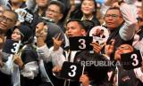 REPUBLIKA.CO.ID, JAKARTA -- Pendukung pasangan calon capres dan cawapres saat menghadiri pengundian nomer urut di gedung KPU Jakarta, Selasa (14/11/2023).