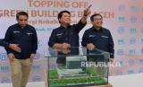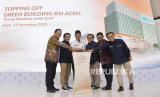 REPUBLIKA.CO.ID, ACEH -- Ketua Diaspora Global Aceh Mustafa Abubakar, Direktur Utama BSI Hery Gunardi, Asisten 3 Provinsi Aceh Iskandar, Direktur Operasi Bidang Gedung PT PP (Persero) Tbk Yuyus Juarsa, Kepala OJK Aceh Yusri, dan Komisaris Utama BSI Muliaman D Hadad menekan tombol bersama sebagai simbolis topping off Green Building BSI Aceh, Banda Aceh (15/11/2023).