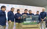 Direktur Utama BSI Hery Gunardi (tengah), bersama jajaran komisaris dan direksi melihat maket gedung seusai acara topping off Green Building BSI Aceh, Banda Aceh (15/11/2023). PT Bank Syariah Indonesia Tbk. (BSI) menargetkan gedung landmark Perseroan di Aceh senilai Rp325 miliar dapat diresmikan pada Maret 2024, menyusul rampungnya konstruksi yang ditandai topping off. Gedung berkonsep green building ini menekankan komitmen BSI memajukan perekonomian di Serambi Mekah. (FOTO : Dok Republika)