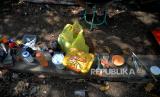 Peralatan yang digunakan seniman untuk menggambar mural di Desa Wisata Rumah Domes, Prambanan, Sleman , Yogyakarta, Rabu (15/11/2023). Kegiatan menggambar rumah domes ini dalam rangka Pekan Budaya Difabel (PBD) 2023 dengan tema Obah Mamah Mingset Greget. Berbagai macam tema mural akan digarap oleh seniman yang lolos kurasi. Waktu menggambar rumah berbentuk bulat peninggalan gempa 2006 ini dilakukan hingga Ahad (19/11/2023) mendatang. Lebih dari 10 rumah domes yang nanti akan di mural oleh seniman yang berbeda. (FOTO : Republika/Wihdan Hidayat)