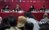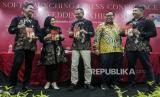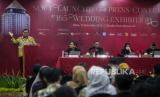REPUBLIKA.CO.ID, JAKARTA. -- Direktur Utama PT Grha 165 Tbk, Hariyo Puguh Witjaksono (kedua kiri) bersama Sales & Marketing Manager Hanafi Munandar, Direktur Nining Purwaningsih dan Project Manager Nourman Prabowo menyampaikan paparan terkait pameran pernikahan 165 Wedding Exhibition ke-4 di Menara 165, Jakarta, Rabu (15/11/2023).