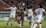 Sejumlah pemain Timnas Meksiko berebut bola dengan pemain Timnas Venezuela pada pertandingan babak penyisihan Grup F Piala Dunia U17 2023 di Stadion Si Jalak Harupat, Kabupaten Bandung, Jawa Barat, Rabu (15/11/2023). Dalam pertandingan tersebut Timnas Venezuela menahan imbang Timnas Meksiko dengan skor akhir 2-2. (FOTO : REPUBLIKA/ABDAN SYAKURA)