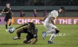 Bek Timnas Jerman Maximilian Hennig (kanan) berebut bola dengan bek Timnas Selandia Baru Nicholas Murphy (kiri) pada pertandingan babak penyisihan Grup F Piala Dunia U17 2023 di Stadion Si Jalak Harupat, Kabupaten Bandung, Jawa Barat, Rabu (15/11/2023). Dalam pertandingan tersebut Timnas Jerman berhasil mengalahkan Timnas Selandia Baru dengan skor akhir 3-1. (FOTO : REPUBLIKA/ABDAN SYAKURA)