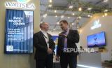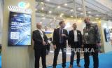 Presiden Wartsila Energi Anders Lindberg, Duta Besar Finlandia untuk Indonesia Pekka Kaihilahti (dari kiri) berbincang dalam pameran Enlit Asia di ICE BSD City, Serpong, Tangsel , Rabu (15/11/2023). (FOTO : Republika/Tahta Aidilla)