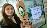 Seorang usher menunjukkan bibit pohon tanaman yang didistribusikan menggunakan vending machine pada acara Telkom ESG Day di Yogyakarta, Kamis (16/11/2023). Sejumlah kegiatan digelar dengan tema ESG for The Next Generation dengan acara talkshow, peresmian logo ESG Telkom dan penanaman pohon. (FOTO : REPUBLIKA/YOGI ARDHI)