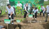 REPUBLIKA.CO.ID, SLEMAN -- Dirut PT Telkom Indonesia Tbk Ririek Adriansyah dan aktivis SGD UNDP Chelsea Islan dalam acara menanam pohon di kawasan Desa Girikerto Kabupaten Sleman, sebagai bagian rangkaian acara Telkom ESG Day di Yogyakarta, Kamis (16/11/2023).