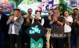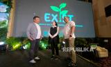 Dirut PT Telkom Indonesia Tbk, Ririek Adriansyah, aktivis SGD UNPDP Chelsea Islan dan Direktur Keuangan Manajemen Resiko Heri Supriyadi di sela peresmian logo EXIST program ESG Telkom pada acara Telkom ESG Day di Yogyakarta, Kamis (16/11/2023). Sejumlah kegiatan digelar dengan tema ESG for The Next Generation dengan acara talkshow, peresmian logo ESG Telkom dan penanaman pohon. (FOTO : REPUBLIKA/YOGI ARDHI)