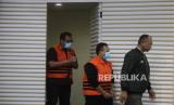 Kepala Kejaksaan Negeri Bondowoso Puji Triasmoro (tengah) dan Kasi Pidsus Kejari Bondowoso Alexander Silaen (kiri) memakai rompi tahanan usai menjalani pemeriksaan pasca OTT di Gedung Merah Putih KPK, Jakarta, Kamis (16/11/2023). Dari OTT tersebut KPK menahan Kajari Bondowoso Puji Triasmoro dan Kasi Pidsus Kejari Bondowoso Alexander Silaen beserta dua orang pihak swasta terkait dugaan tindak pidana korupsi berupa pemberian hadiah atau janji dalam rangka pengurusan perkara di Kejaksaan Negeri Bondowoso, dengan barang bukti berupa uang senilai Rp 450 juta. (FOTO : Republika/Putra M. Akbar)