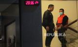 Kepala Kejaksaan Negeri Bondowoso Puji Triasmoro memakai rompi tahanan usai menjalani pemeriksaan pasca OTT di Gedung Merah Putih KPK, Jakarta, Kamis (16/11/2023). Dari OTT tersebut KPK menahan Kajari Bondowoso Puji Triasmoro dan Kasi Pidsus Kejari Bondowoso Alexander Silaen beserta dua orang pihak swasta terkait dugaan tindak pidana korupsi berupa pemberian hadiah atau janji dalam rangka pengurusan perkara di Kejaksaan Negeri Bondowoso, dengan barang bukti berupa uang senilai Rp 450 juta. (FOTO : Republika/Putra M. Akbar)