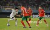 Pemain Timnas Indonesia Amar Brikc berusaha melewati hadangan pemain Timnas Maroko saat bertanding pada babak penyisihan Piala Dunia U17 di Stadion Gelora Bung Tomo, Surabaya, Jawa Timur, Kamis (16/11/2023). Timnas Indonesia kalah dari Timnas Maroko dengan skor 3-1. (FOTO : Republika/Thoudy Badai)