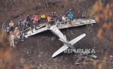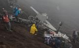 Warga berada di dekat bangkai pesawat tempur taktis EMB-314 Super Tucano TNI AU yang mengalami kecelakaan di Pasuruan, Jawa Timur, Jumat (17/11/2023). Dua pesawat tempur taktis EMB-314 Super Tucano TNI AU milik Skadron Udara 21 Landasan Udara Abdulrachman Saleh, Malang mengalami kecelakaan di wilayah Kabupaten Pasuruan, Jawa Timur, Kamis 16 November 2023 yang mengakibatkan empat orang meninggal dunia. (FOTO : Antara/Umarul Faruq)