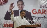 Calon Presiden Anies Baswedan menyampaikan pidato kebangsaan saat acara deklarasi Garda Matahari di Gedoeng Joeang 45, Menteng, Jakarta, Jumat (17/11/2023). Garda Matahari mendeklarasikan dukungan pada Pilpres 2024 untuk pasangan Capres Anies Baswedan dan Cawapres Muhaimin Iskandar sebagai sebuah ikhtiar politik dalam menegakan keadilan dan demokrasi. (FOTO : Republika/Putra M. Akbar)