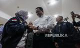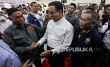 Calon Presiden Anies Baswedan (tengah) menyalami pendukungnya saat acara deklarasi Garda Matahari di Gedoeng Joeang 45, Menteng, Jakarta, Jumat (17/11/2023). Garda Matahari mendeklarasikan dukungan pada Pilpres 2024 untuk pasangan Capres Anies Baswedan dan Cawapres Muhaimin Iskandar sebagai sebuah ikhtiar politik dalam menegakan keadilan dan demokrasi. (FOTO : Republika/Putra M. Akbar)