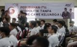 Pendukung menyimak menyampaikan pidato kebangsaan dari Calon Presiden Anies Baswedan saat acara deklarasi Garda Matahari di Gedoeng Joeang 45, Menteng, Jakarta, Jumat (17/11/2023). Garda Matahari mendeklarasikan dukungan pada Pilpres 2024 untuk pasangan Capres Anies Baswedan dan Cawapres Muhaimin Iskandar sebagai sebuah ikhtiar politik dalam menegakan keadilan dan demokrasi. (FOTO : Republika/Putra M. Akbar)