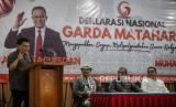 REPUBLIKA.CO.ID,JAKARTA -- Calon presiden Anies Baswedan menyampaikan pidato kebangsaan saat acara deklarasi Garda Matahari di Gedoeng Joeang 45, Menteng, Jakarta, Jumat (17/11/2023).