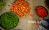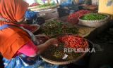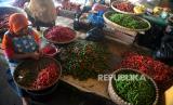 Pedagang memilah cabai rawit di Pasar Beringharjo, Yogyakarta, Jumat (17/11/2023). Harga cabai di Pasar Beringharjo belum juga turun sejak awal bulan ini. Harga yang paling tinggi yakni Cabai Rawit masih berada di Rp 80 ribu per kilogram dan Cabai Merah Besar per kilogramnya seharga Rp 60 ribu. Menurut pedagang, banyaknya gagal panen di tingkat petani yang menyebabkan naiknya harga cabai di pasar. (FOTO : Republika/Wihdan Hidayat)